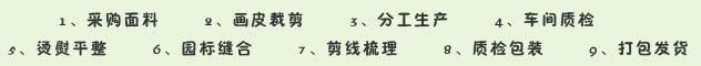 生产9大流程监控,按照进商城标准生产,每件衣服都有质检,责任到人;剪裁、生产、烫熨、质检、包装等工序,都有严格规定,力求完美。